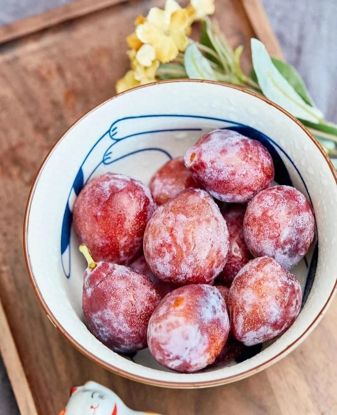 西梅要吃新鲜的营养价值才高,挑选上主要是看果皮,果皮覆着一层薄薄的淡紫色,是成熟的标志,也是新鲜的印记。其次是果肉,果肉上摸上去是硬里带着饱满的触感,就是好。