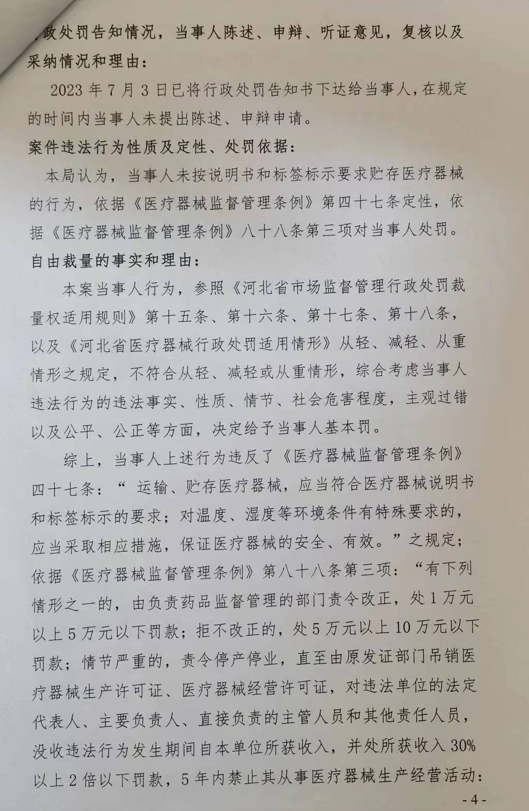 未按要求贮存医疗器械,河北北方学院附属第二医院被罚2.5万 2023-12-04 寻医问药 18608 作者:贝莱孕育 张家口市宣化区人民政府网站19日发布行政处罚信息,河北北方学院附属第二医院未按说明书和标签标示要求贮存医疗器械被罚款2.5万元。行政处罚决定书如下: